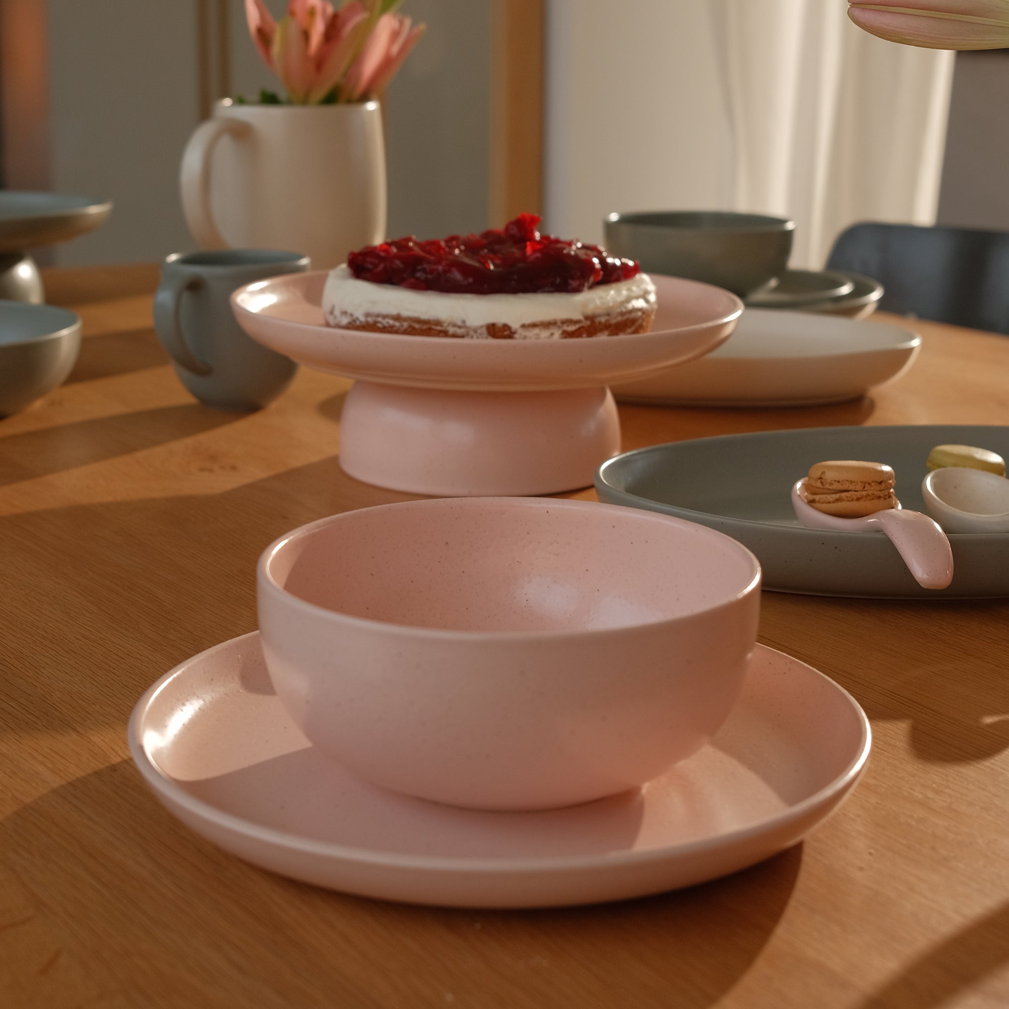 Breng een trendy sfeer naar je eettafel met de Marshmallow serviesset plus uit de Pacifica collectie. Deze set bevat alles wat je nodig hebt om je tafel sfeervol te dekken: een dinerbord, pastabord, ontbijtbord en kom. Maak je set helemaal compleet met de karaf, taartschaal, mokken en serveerschalen uit deze collectie.